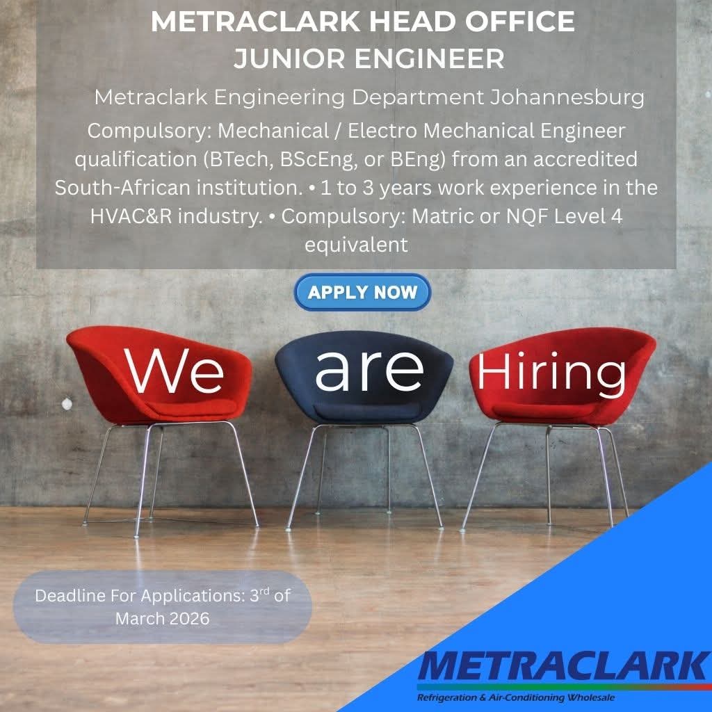 Metraclark is looking for a driven Junior Engineer to join our Engineering team at Head Office in Denver, Johannesburg.