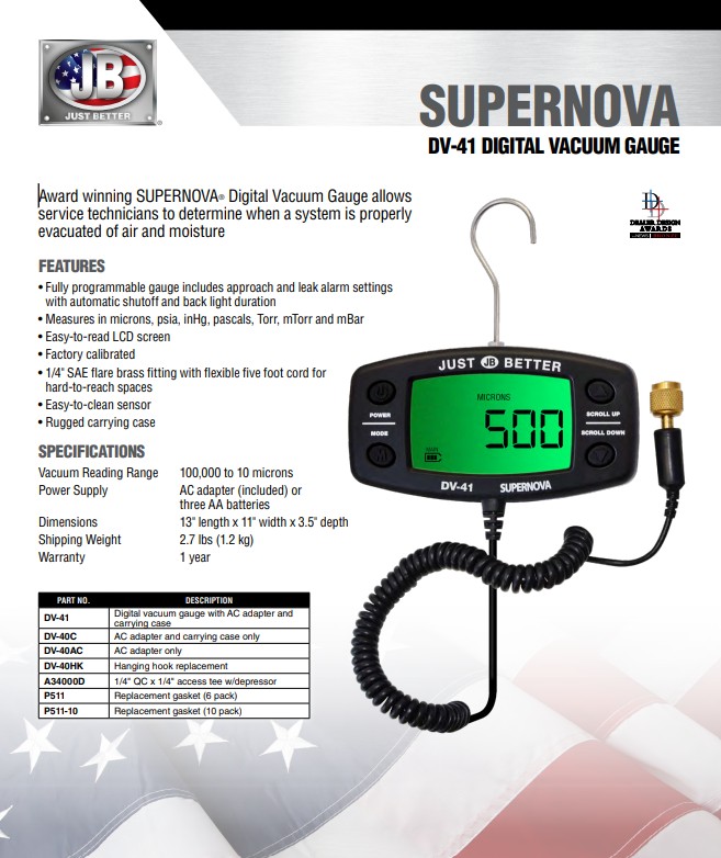 | Short Description : | JB Industries DV-41 Supernova Vacuum Gauge, 10 to 12000 um Measuring Range, SAE Flared |